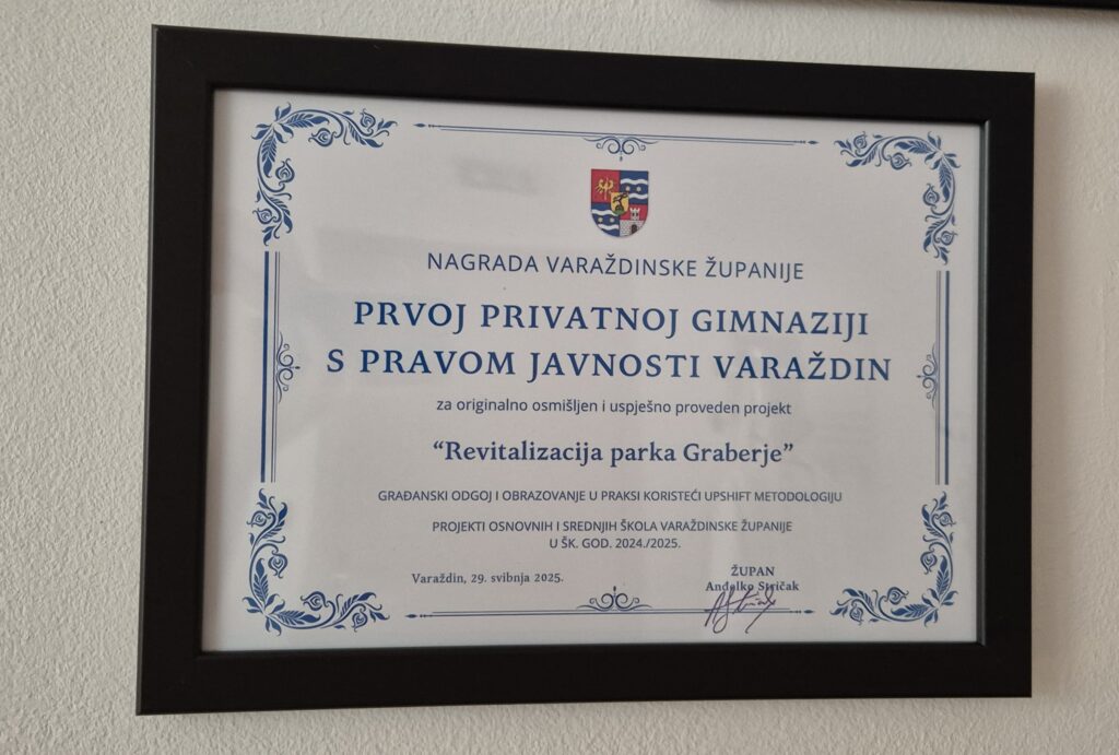 Naš projekt ”Revitalizacija parka Graberje” prepoznat je kao jedan od najinovativnijih i najutjecajnijih projekata građanskog odgoja i obrazovanja Varaždinske županije u ovoj školskoj godini.