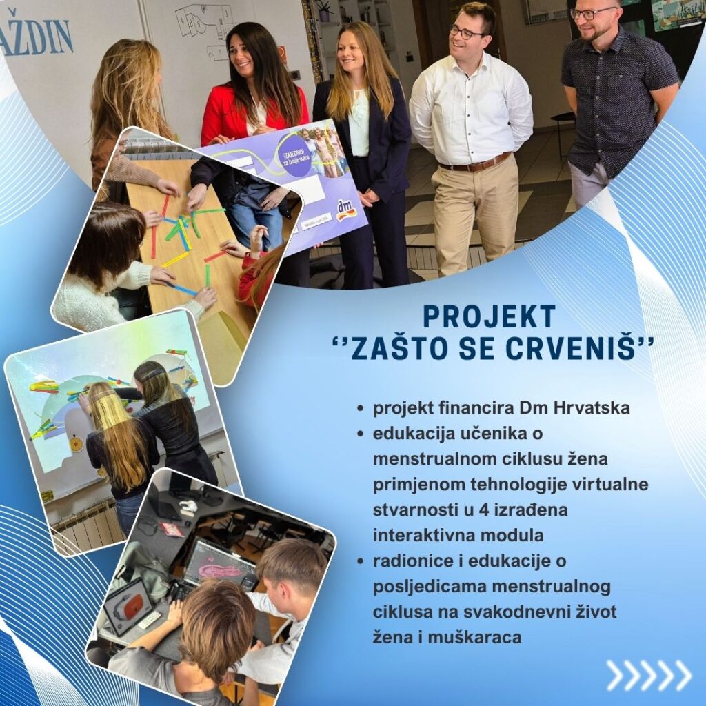 Projektom ”Zašto se crveniš?” primjenom tehnologije virtualne stvarnosti u 4 izrađena interaktivna modula educiramo učenike o menstrualnom ciklusu.