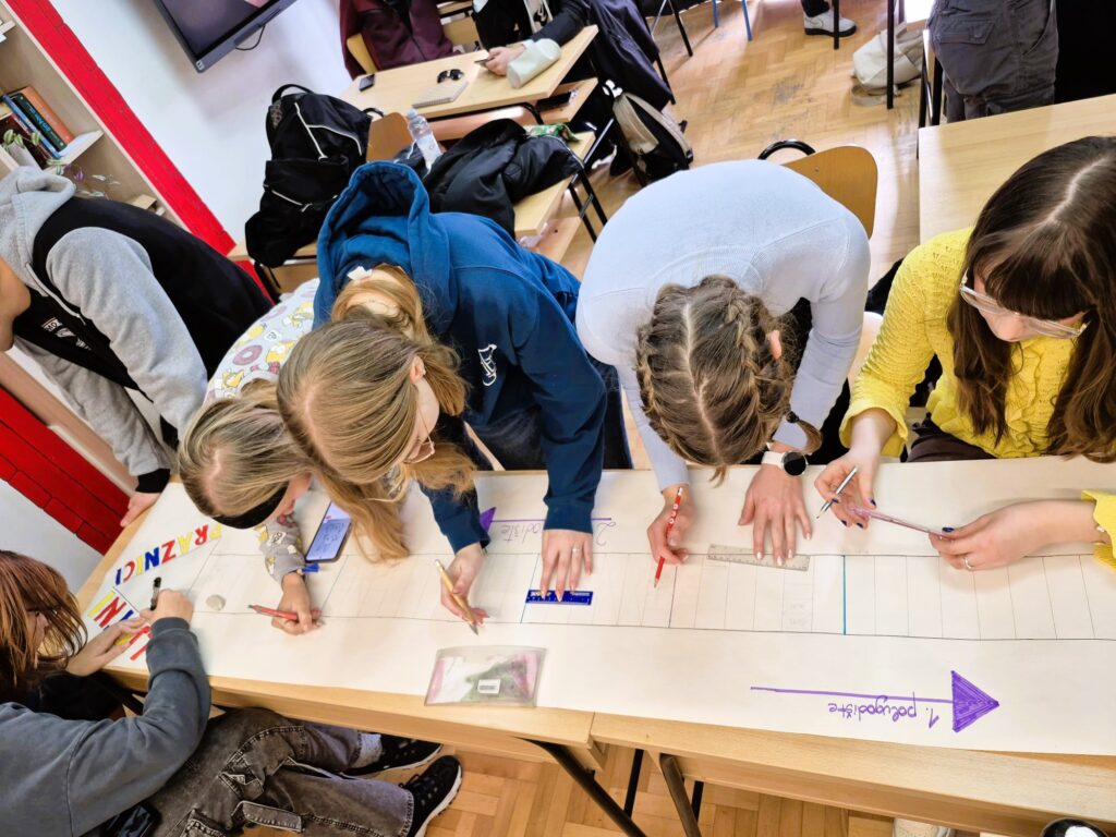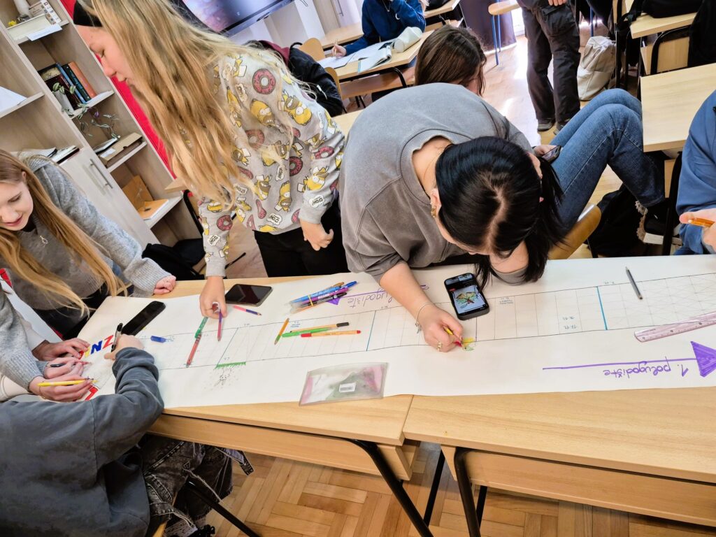 Da bi u ovom užurbanom vremenu lakše pratili nastavnu godinu, učenici su izradili vremensku lentu koja sadrži sve važne datume: početak i završetak blokova, praznike, terenske nastave i sl.