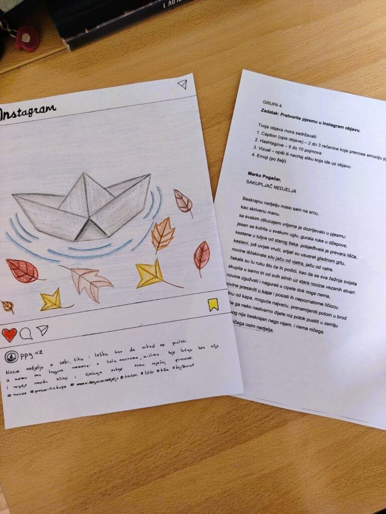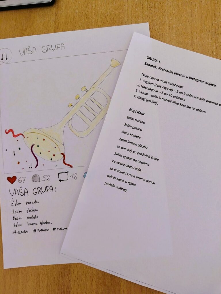 Cilj radionice bio je razumjeti poruku i emociju bez klasične analize pjesme, interpretacija kroz učenicima poznat i blizak medij te povezivanje poezije sa svakodnevicom.